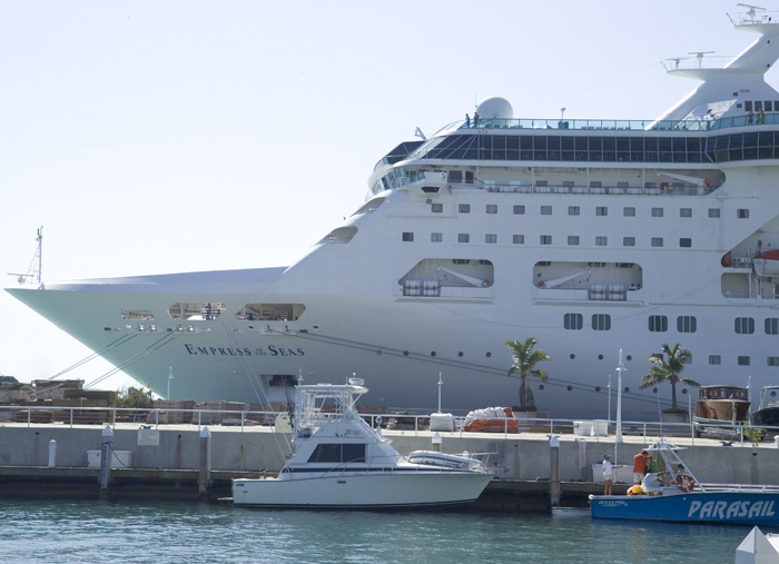 I'm surprised they let you just pull up next to a cruise ship like that. I would have thought some guys with M-16's would come running out and chase you away. Last cruise we went on, I was up and on the deck when we pulled into Miami at 4 AM. I few miles away from port I saw a couple Coast Guard tenders were looking all around the sides of the ship with searchlights. Went on for about 30 minutes. I asked one of the crew later, said it was standard post 9/11 procedure, they were looking for bombs. Sean Burlingham "Island Time" 1987 Bertram 33 SF Melbourne, FL SBurlingham@cfl.rr.com