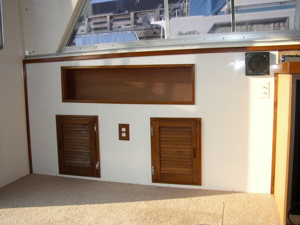 Al, That looks great!!! On my 81 i have sliders and a forward solid door which i think is standard. the problem here in florida is that the louvered doors and the open cubby would let too much heat in unless you could insulate behind the frame work. Storage is a premium.